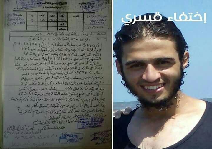 مرفق صورة المثنى مع البلاغ الخاص بالإختفاء القسري المقدم للمجلس القومي لحقوق الإنسان.