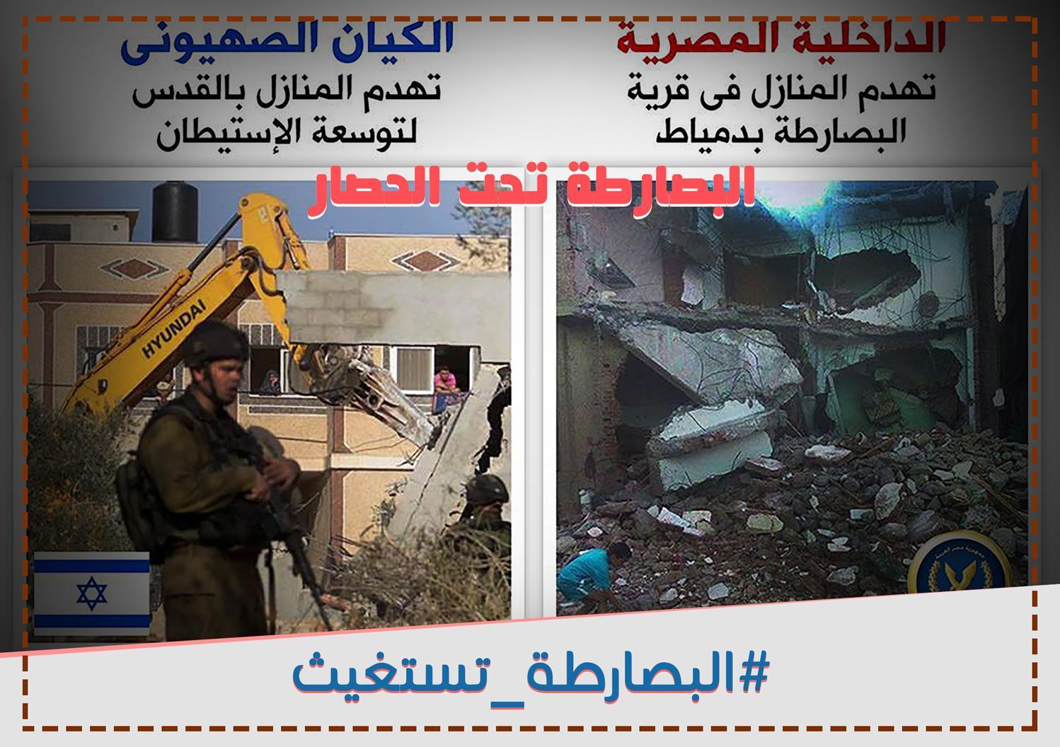 الإنقلاب العسكري يسير على خطى اسياده الصهاينه ويهدم منازل المعتقلين بالبصارطة
