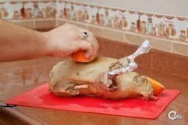 بنحشي البطه بالخلطه ونقفل بالإبره والخيط كويس ولا أفضل إستخدام الخله