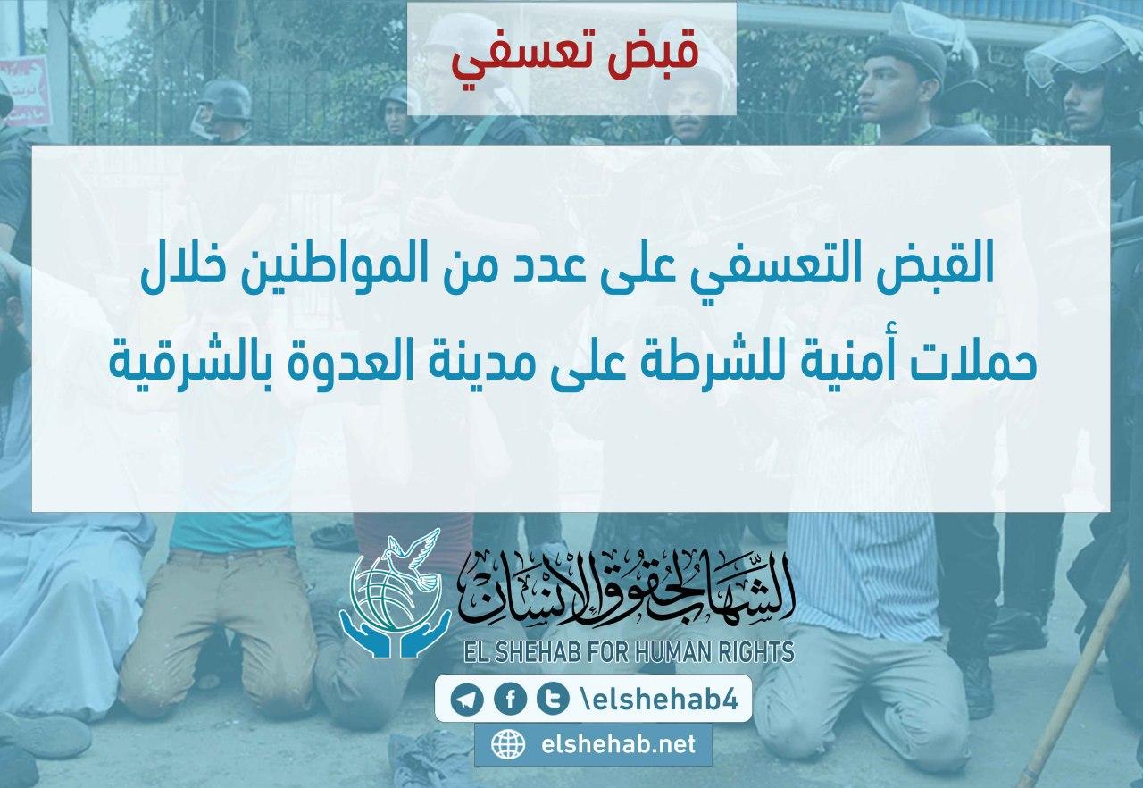 وحاصرت الحملة بعدد من السيارات الشرطية والمدرعات مداخل القرية وانتشرت بين شوارعها وداهمت عشرات المنازل وحطمت الأثاث وسرقة بعض المحتويات وروعت الأهالى خاصة النساء والأطفال، قبل أن تعتقل الهادي محمد عبدالدايم -٤٦ سنه-محاسب بإدارة ههيا التعليميه ولدية 4 أولاد وسعيد محمد عبدالدايم-50سنه- يعمل بالخارج ولدية 3 أولاد وسعيد حسن عبدالدايم-19سنه-طالب ومدحت السيد مهدي-٢٥سنه- فلاح واحمد محمد صلاح ابو العلا-16سنه-طالب وسعيد الذاكي القزاز-٤٧سنه-موظف ولدية 4 أولاد ويوسف السيد عبدالدايم-٥٠سنه- مدرس بمدرسة العدوه ولدية 5 أبناء