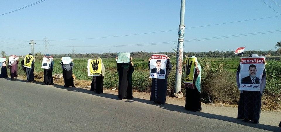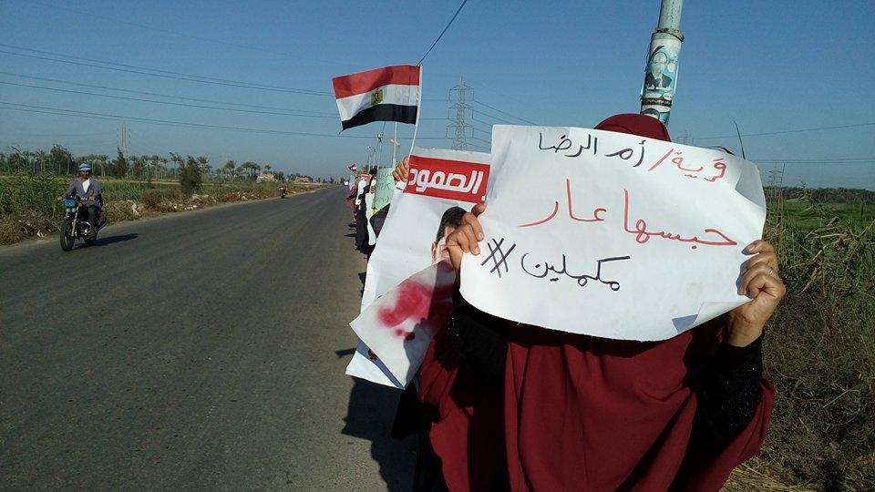 تنديدا بالاقتحامات المتكررة للقرى و حبس البنات و استمرار الاخفاء القسري للشباب نظمت حرائر كفر سعد سلسلة بشرية صباح اليوم أمام قرية الصمود و التحدي قرية أم الرضا على طريق دمياط – جمصة الزراعي