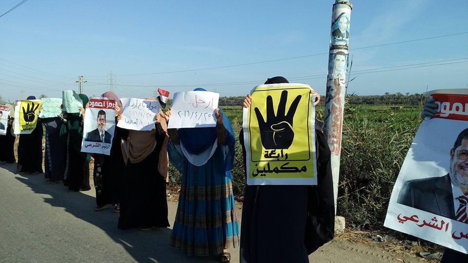 مع بزوغ نهار يوم 25 أبريل خرجت حرائر كفر سعد لتعلنها قوية ارحل في سلسلة نظمتها النساء على طريق دمياط - جمصة الزراعي رفعت النساء صور الرئيس محمد مرسي و اعلام مصر متعانقة مع اعلام رابعة و لافتات تطالب برحيل السفاح
