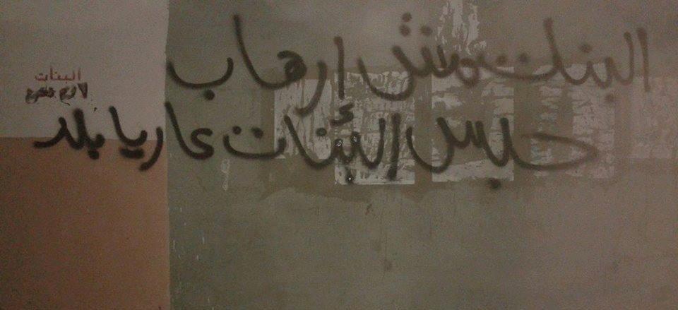 قام شباب غاضب من تجديد حبس بنات دمياط بعمل حملة كتابات على جدران منازل قرية العنانية كتب الشباب عبارات حبس البنات عار البنات مش ارهاب لو دي اختك ترضاها حبس البنات عار يا بلد
