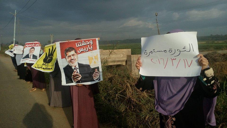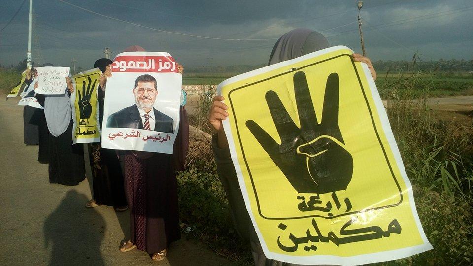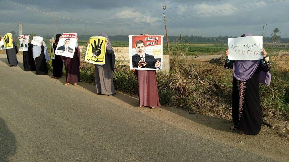 نظمت حرائر قرية أم الرضا سلسلة بشرية صباحية على طريق دمياط – جمصة الزراعي