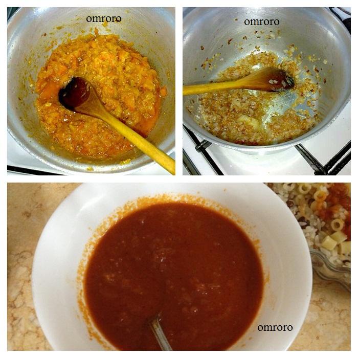 2- لتحضير الدقة: تخلط جميع المكونات مع بعض ثم توضع في مقلاة على النار حتى تغلي وترفع جانباً.