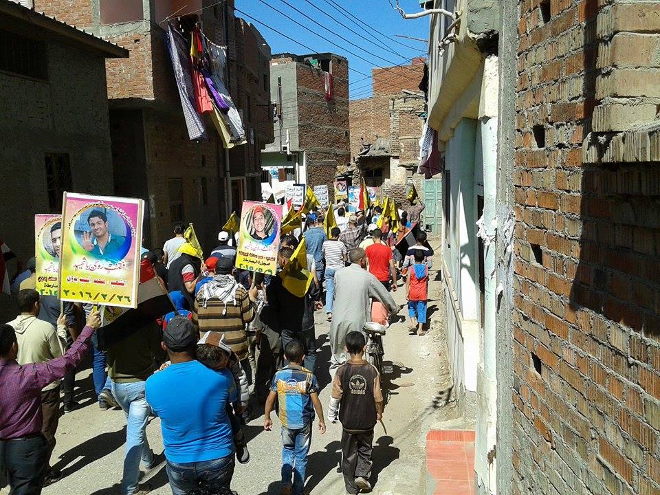 نظم التحالف الوطني لدعم الشرعية في دمياط بقرية البصارطة بالتنسيق مع حركات شباب و نساء و طالبات ضد الانقلاب مسيرة حاشدة اليوم بعد صلاة الجمعة من مسجد عبد الفتاح بمنطقة العدايسة و جابت معظم شوارع القرية منددين بغلاء الاسعار و استمرار اعتقال البنات و رافضين بيع الجزيرتين لتنتهي المسيرة في منطقة عجور