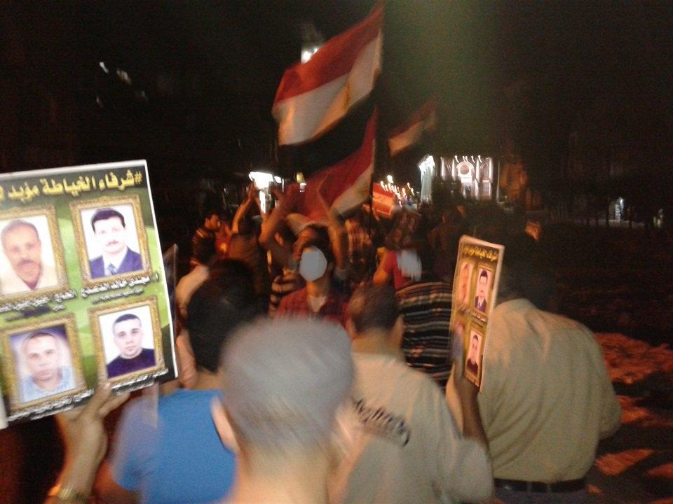مسيرة حاشدة في قرية الخياطة مساء اليوم انطلقت من امام مسجد الرحمن الجديد على طريق الرئيسى عزبة البرج- دمياط و واصل الثوار المسيرة حتى قرية الجواهره والبصايلة ثم عادت مرة أخرى وانتهت امام مسجد الرحمن الجديد