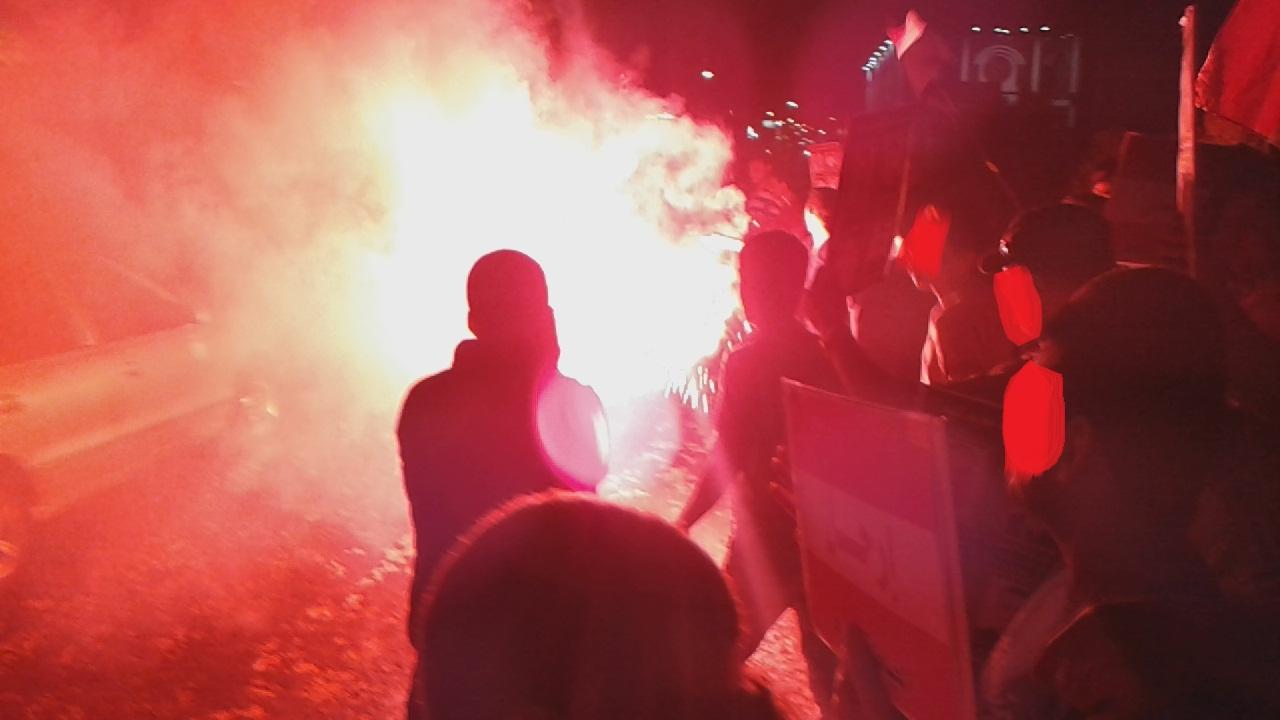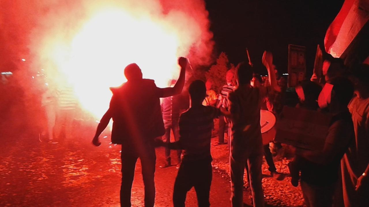 تقدم المسيرة الشباب يلهبون حماس المشاركين بالاهازيج و الهتافات و الالعاب النارية