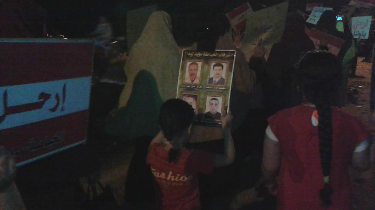 رفع الثوار لافتات ارحل ، و اعلام مصر و صور المعتقلين من أبناء قرية الخياطة