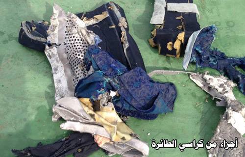 بالمخالفة للأعراف الدولية : المتحدث العسكري باسم الانقلاب يقوم بنشر أول صور لحطام الطائرة المصرية المنكوبة و بعض متعلقات الضحايا