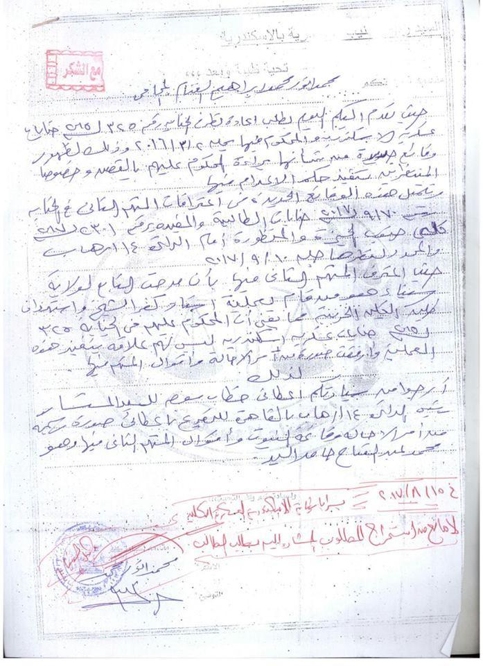ورد للمنظمة مستندات بأدلة براءة جديدة للمتهمين المحكومين بالإعدام في قضية ستاد كفرالشيخ، وحتى الآن ترفض النيابة العسكرية قبول الطعن.