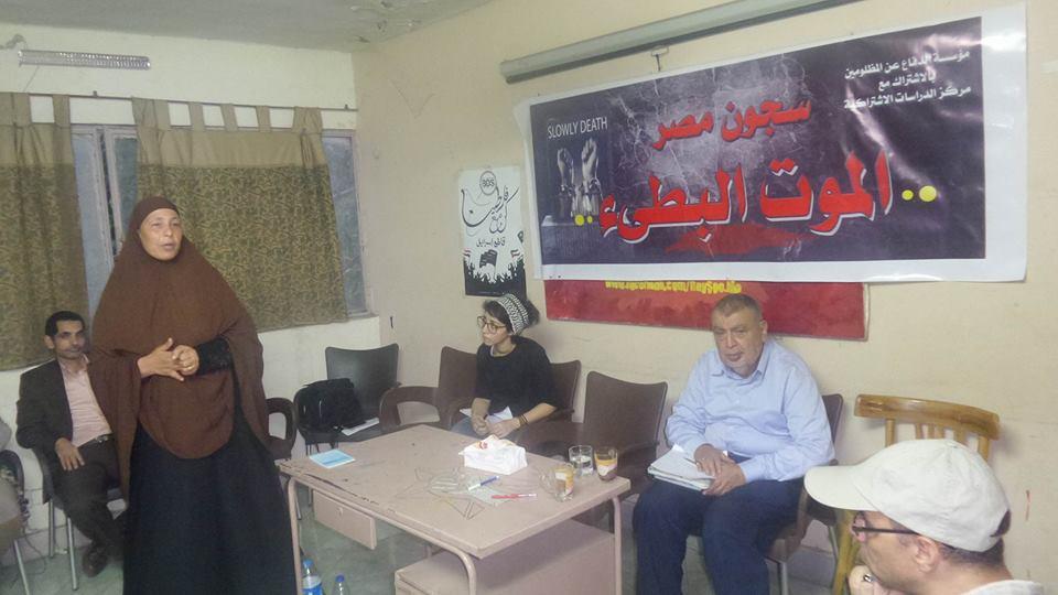 نظمت مؤسسة الدفاع عن المظلومين بالتعاون مع مركز الدراسات الاشتراكية لقاء مفتوح مع عدد من أهالي سجناء الرأي ومحاميهم للاستماع لشهاداتهم حول أحوال السجون و السجناء في مصر تحت عنوان : سجون مصر .. الموت البطئ