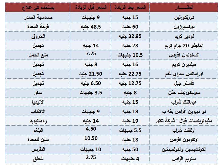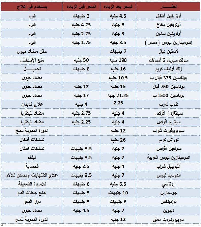 كما أكد نقيب الصيادلة أن الشركات قامت برفع الأسعار لبعض الأصناف وتوقفت عن صناعة الأدوية رخيصة الثمن تجاوزا للخسائر؛ ما أدى إلى نقص أدوية كثيرة.