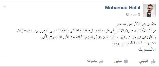 ورد إلى المنظمة استغاثة من أهالي قرية البصارطة التابعة لمحافظة دمياط، وبحسب ما ورد في الاستغاثة تواصل قوات الأمن المصرية محاصرة القرية من جميع مداخلها، وتنشر مناخ عدم الاستقرار، وحولت القرية لثكنه عسكرية، وسط حالة من الغضب والسخط بين عموم أهالى القرية.