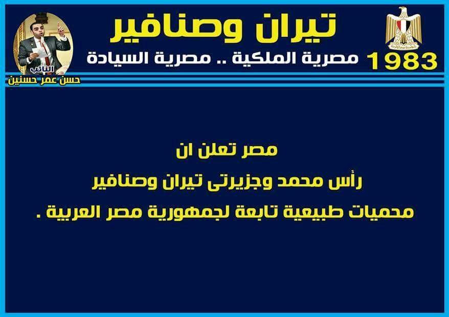 – انتفض لأرضك فهي عرضك.. ان مرت اتفاقية بيع تيران وصنافير اليوم فغدا تباع شرم الشيخ و بعد غد خلايب وشلاتين ومن يدري فقد تباع القاهرة لمن يدفع أكثر و تكون مصر تحت المزاد العلني.