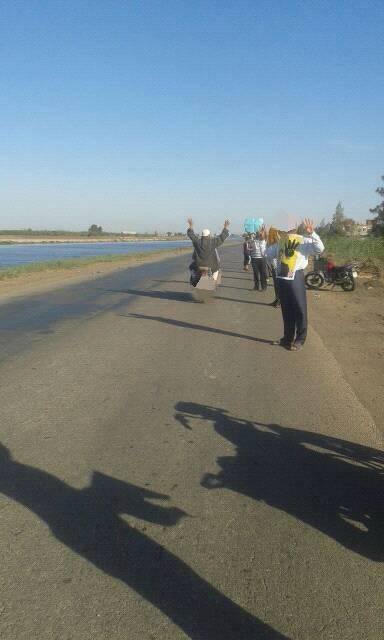 نظم ثوار قرى مركز فارسكور سلسلة بشرية على طريق قرية أبو جريدة أمام ترعة السلام رافعين شارات رابعة وصور الرئيس مرسي كما رفعوا لافتات للتنديد بتدني المعيشة والمشاكل اليومية الموجودة في ظل حكم العسكر وللمطالبة برحيل النظام