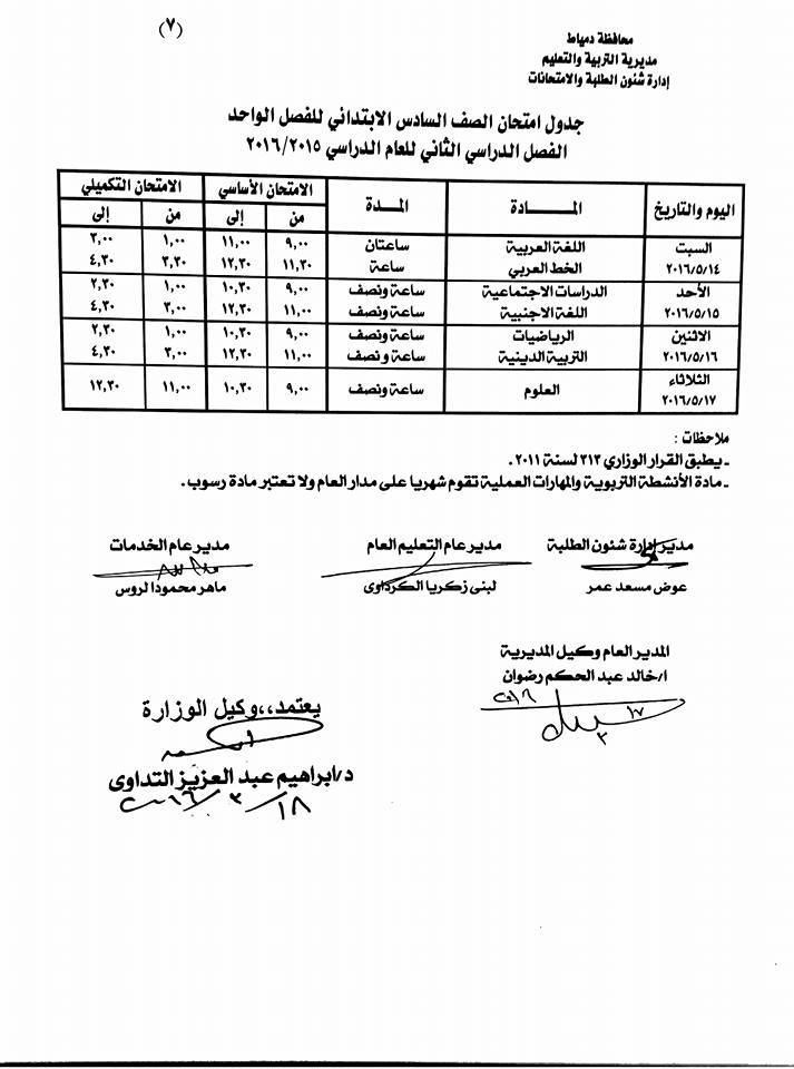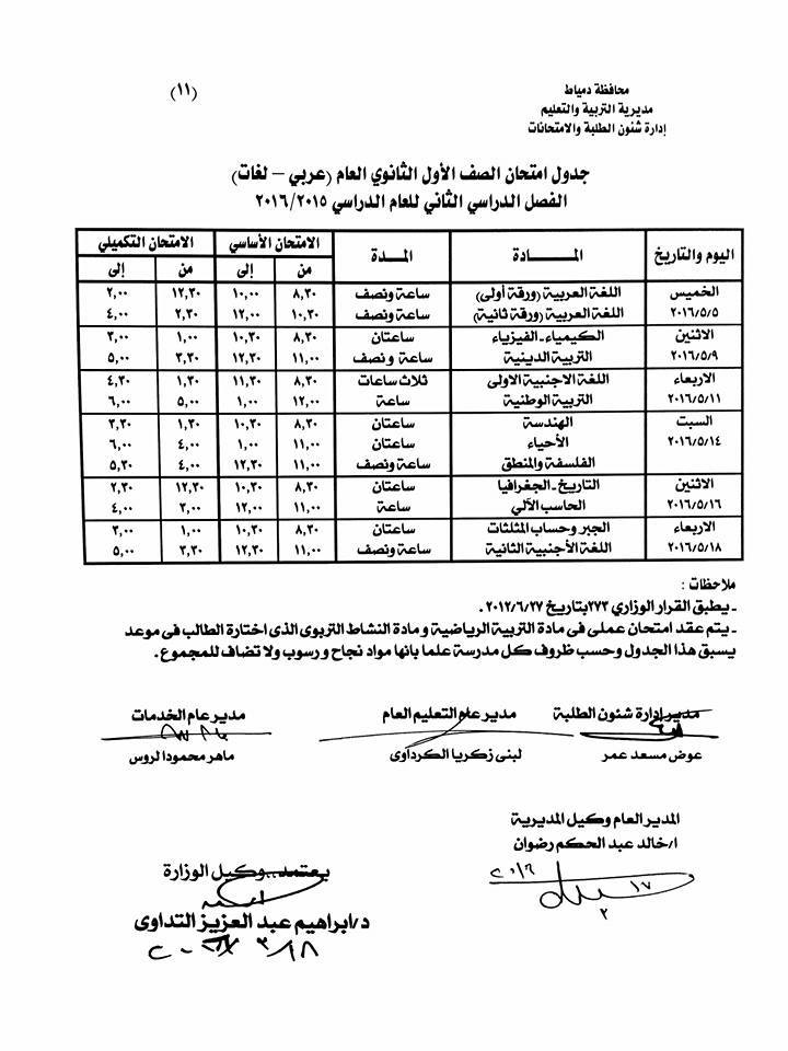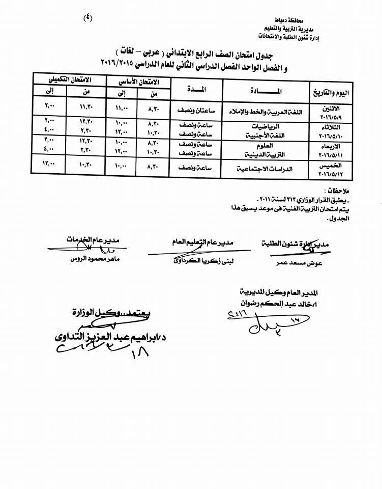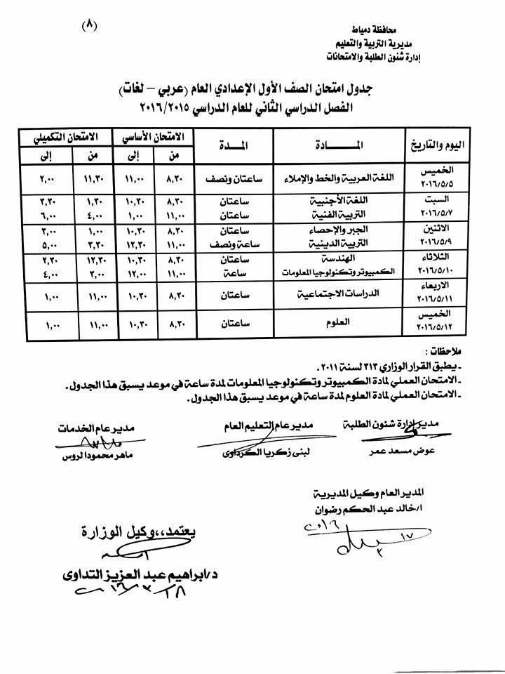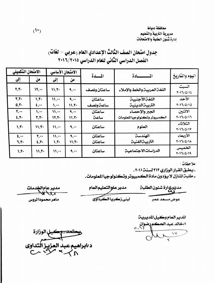 ننشر هنا جداول امتحانات الفصل الدراسي الثاني لكافة المراحل الدراسية عربي / لغات و المستوى الخاص المرحلة الابتدائية : المرحلة الاعدادية المرحلة الثانوية :