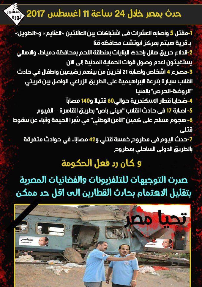 وأضاف ملاك: “توجد مسؤولية قانونية تقع على عاتق المسؤول الحكومي، وهناك العديد من الدراسات التي اهتمت بتحديث السكة الحديد في مصر، لكن عدم الاهتمام رغم الكوارث السابقة، هو المسيطر على الوضع”.