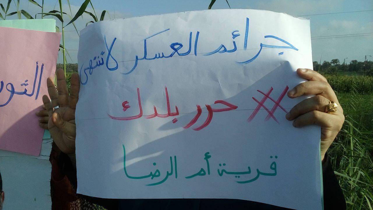 نظمت أهالي المعتقلين والشهداء بقرية أم الرضا صباح اليوم سلسلة بشرية على طريق دمياط – جمصة الزراعي أمام قرية أم الرضا