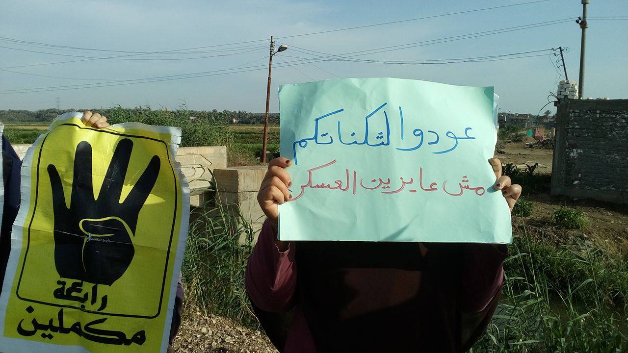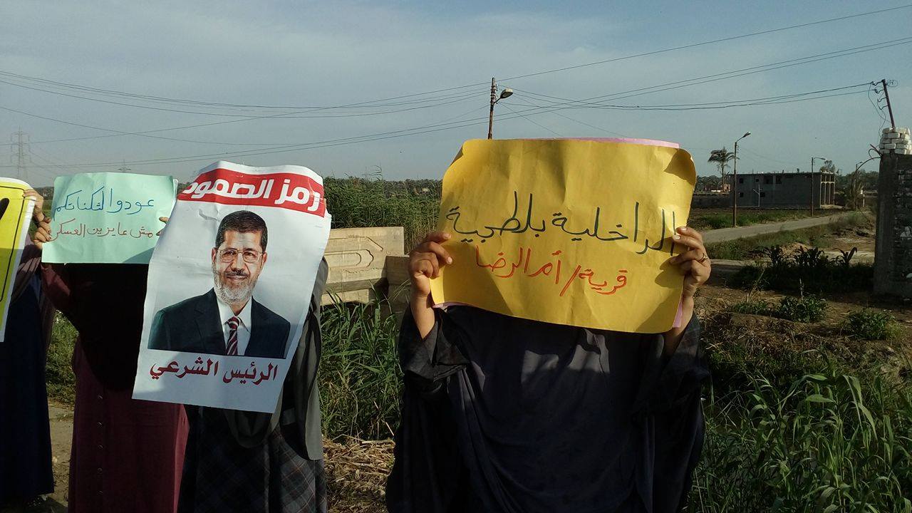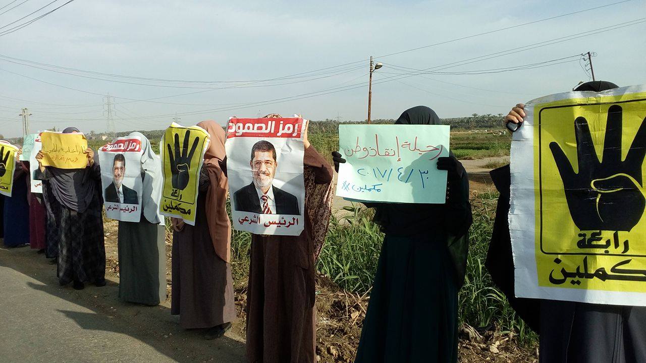 نظمت أمهات و زوجات و بنات الشهداء و المعتقلين بقرية أم الرضا سلسلة بشرية على طريق دمياط – جمصة الزراعي .