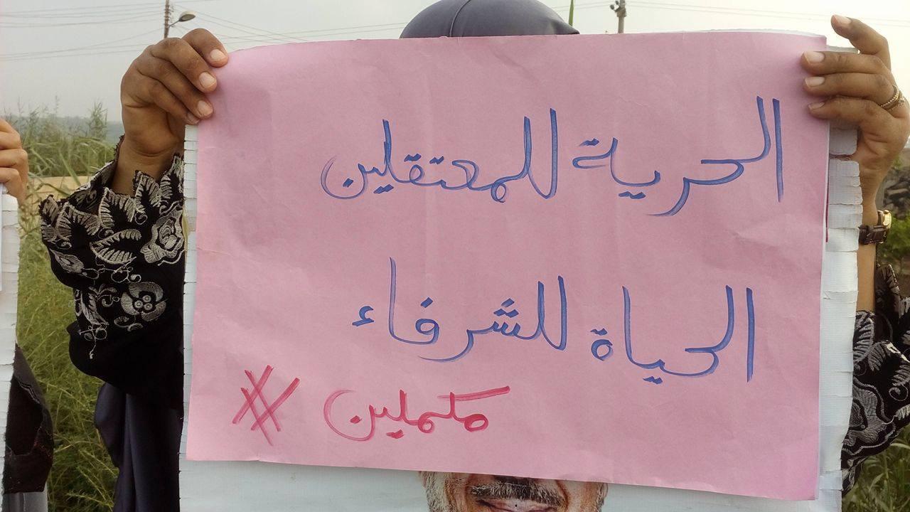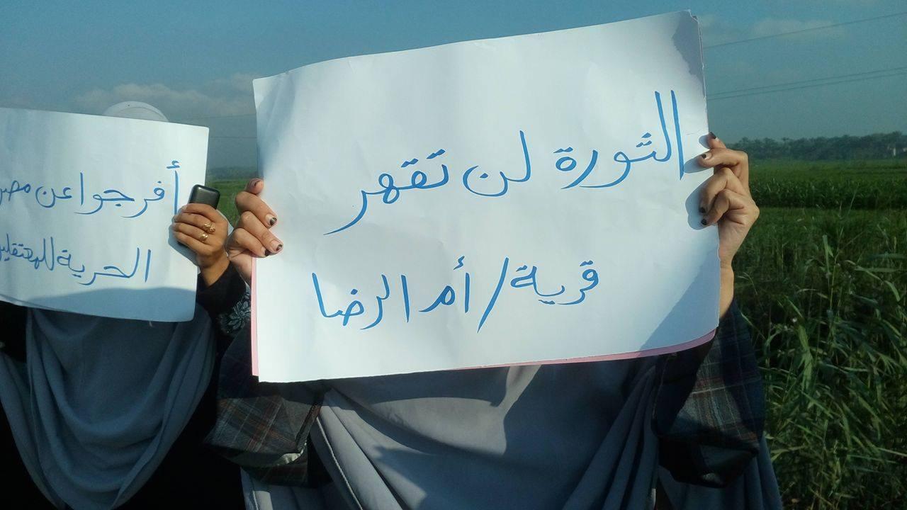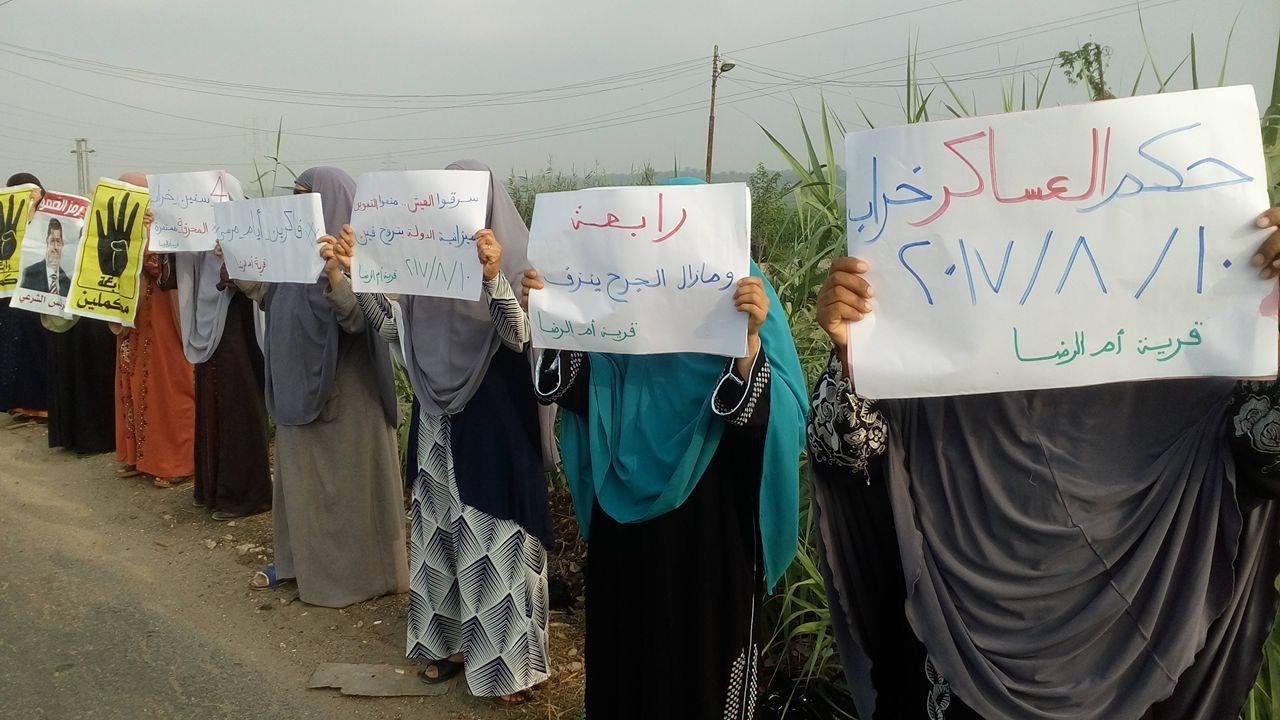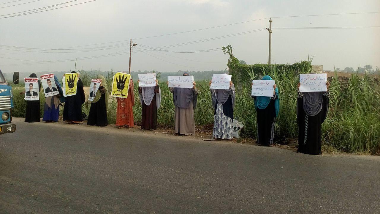 نظمت أمهات وزوجات وأقارب الشهداء والمعتقلين بقرية أم الرضا -مركز كفر البطيخ بدمياط صباح اليوم سلسلة بشرية على طريق دمياط جمصة الزراعي .