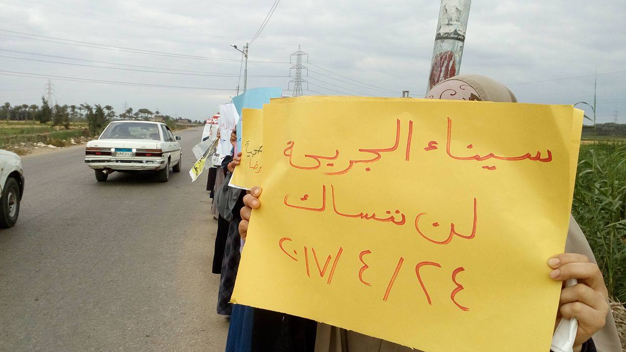 دمياط | سلسلة بشرية لحرائر أم الرضا #البنات_لازم_تخرج #سيناء_الجريحة #البصارطة_تستغيث تضامناً مع أهالي سيناء و #البصارطة و #بنات_دمياط اللاتي سيحاكمن بعد غد … نظمت نساء ضد الانقلاب بكفر البطيخ و كفر سعد سلسلة بشرية صباح اليوم أمام قرية أم الرضا على طريق دمياط – جمصة الزراعي . رفعت المشاركات لافتات تطالب بفك الحصار عن البصارطة و الحرية لبنات دمياط المعتقلات . كما أكدت المشاركات على تضامنهن مع أهالي سيناء ضد حملة التهجير و القتل بحق أبنائها .