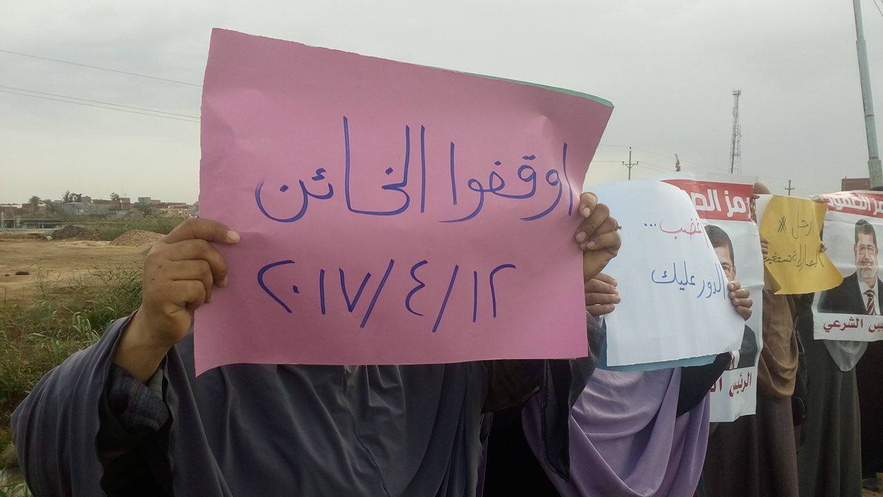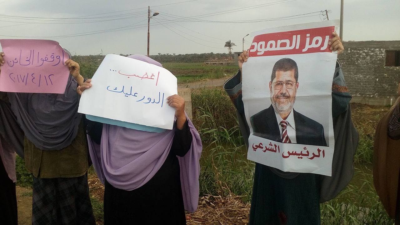زوجات و أمهات المعتقلين و الشهداء ينظمن سلسلة بشرية أمام قرية أم الرضا على طريق دمياط – جمصة الزراعي .