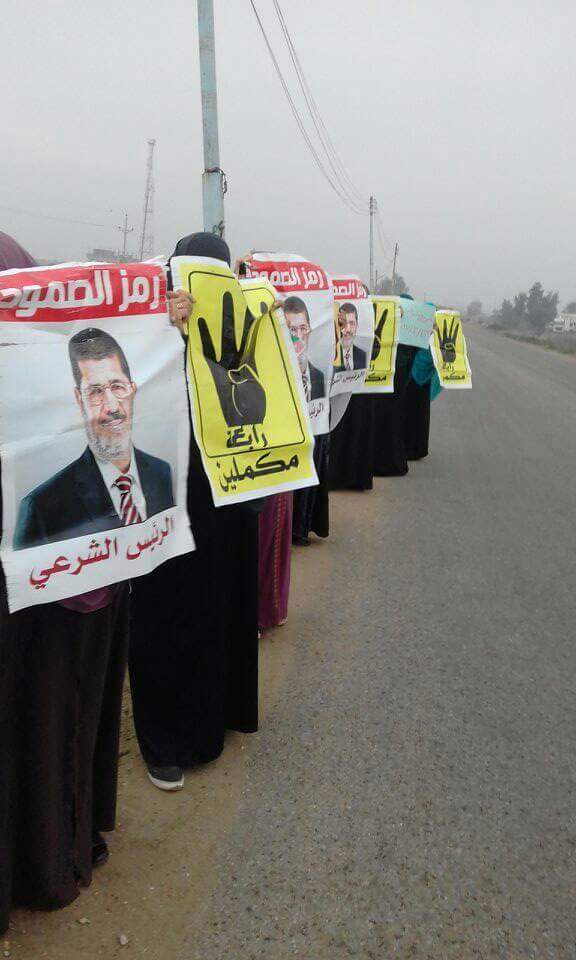 نظمت نساء ضد الانقلاب بكفر سعد وكفر البطيخ سلسلة بشرية صباح اليوم الأربعاء، على طريق دمياط -جمصة الزراعي، أمام قرية أم الرضا.