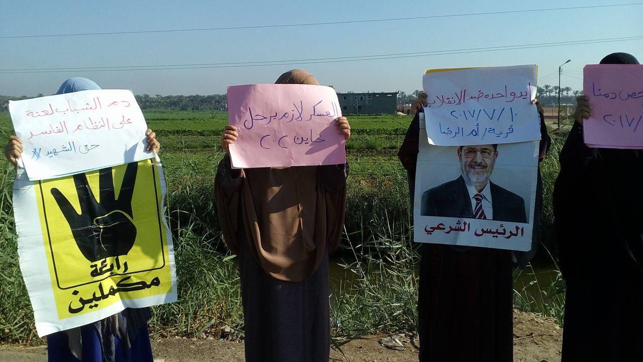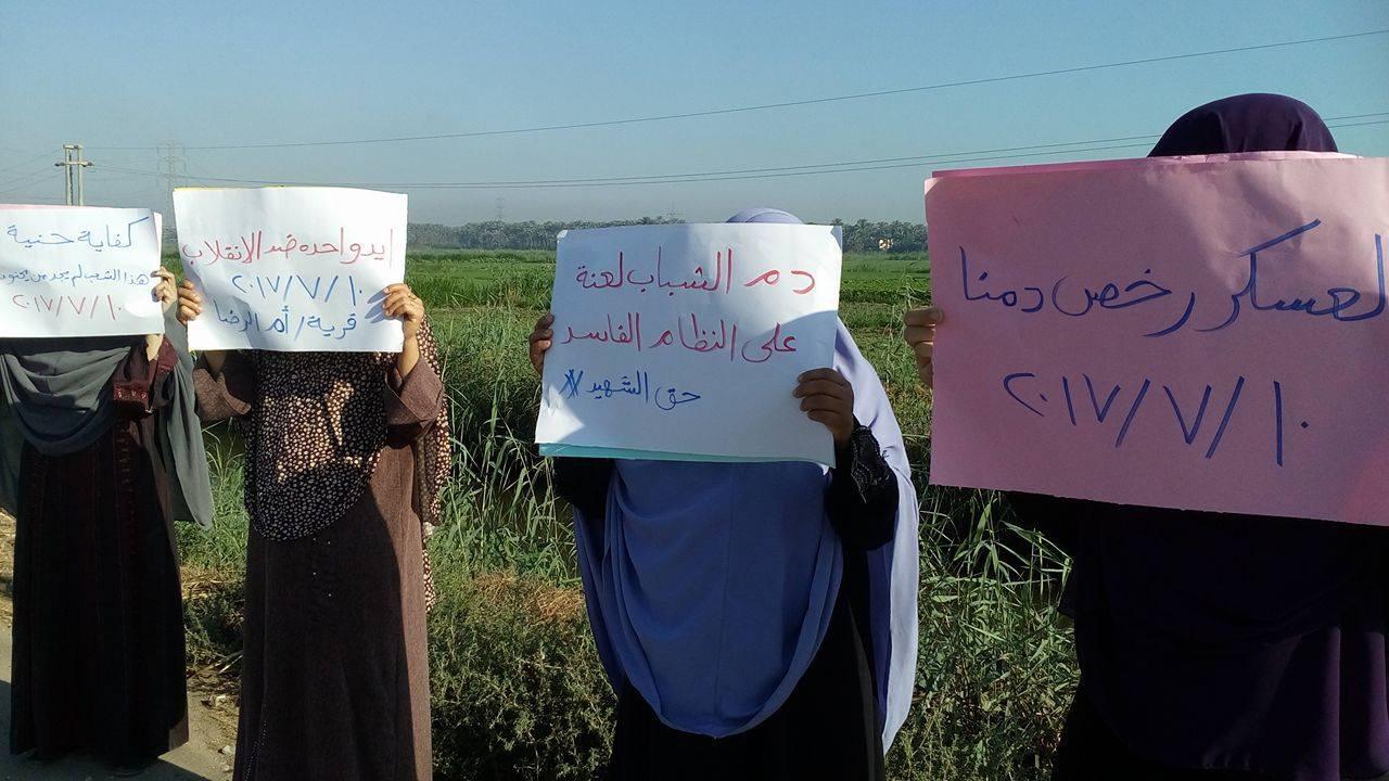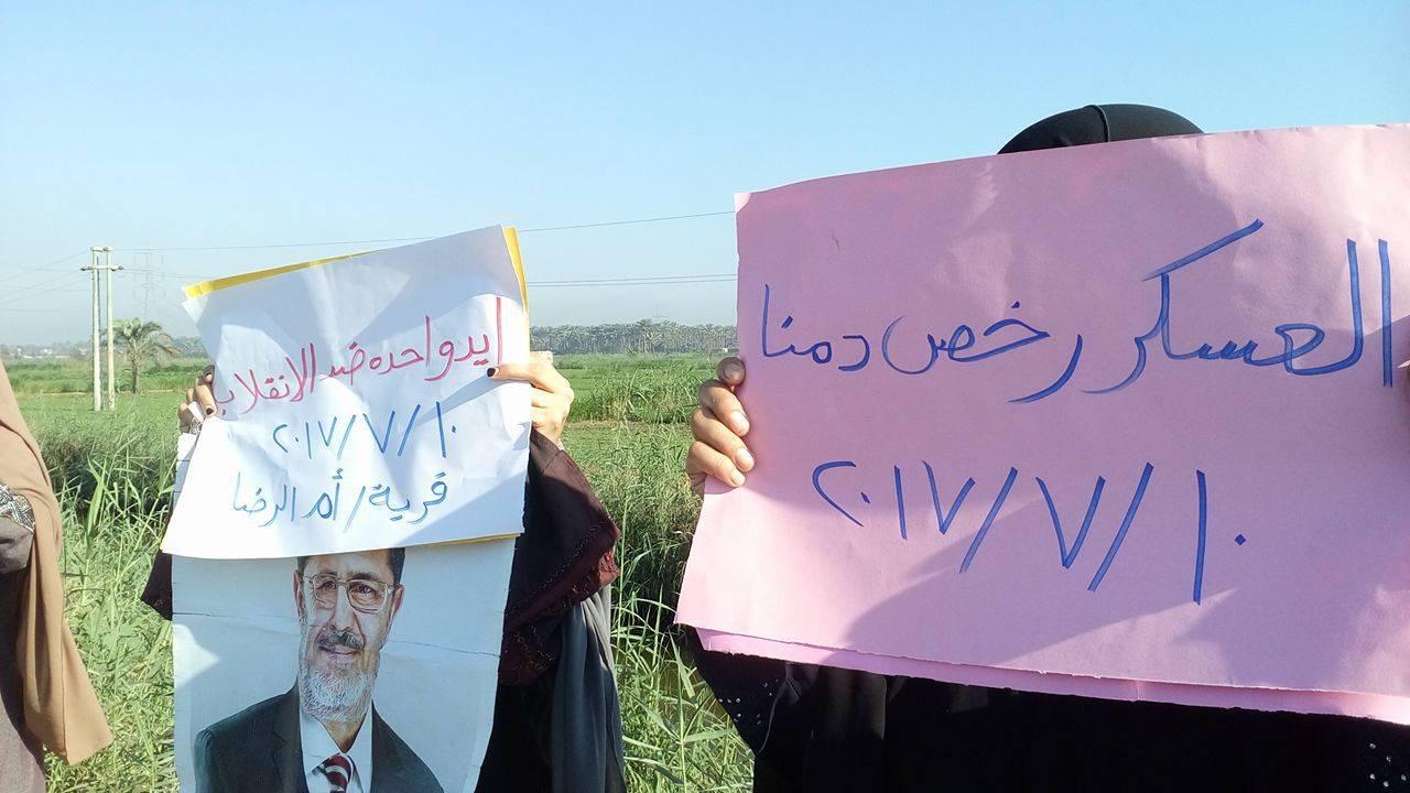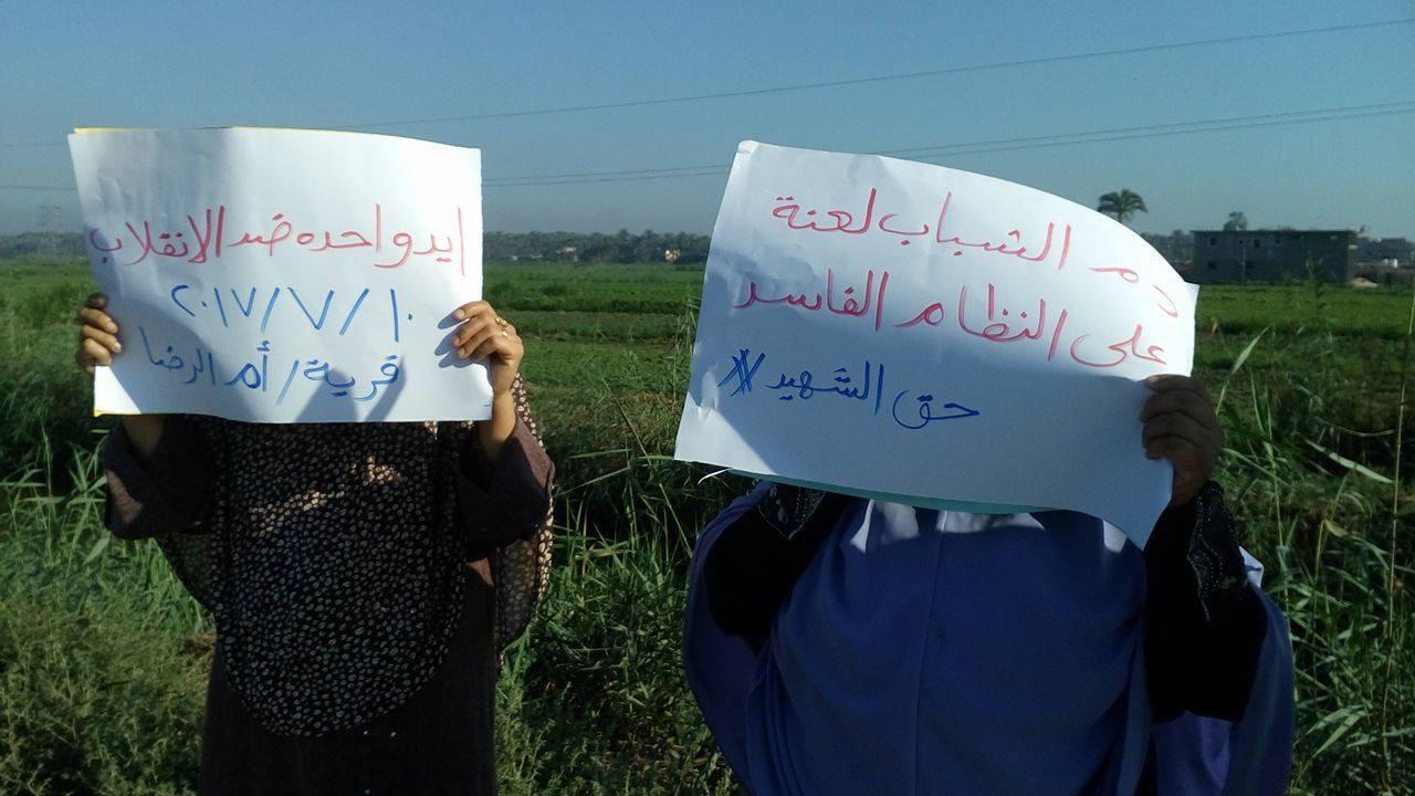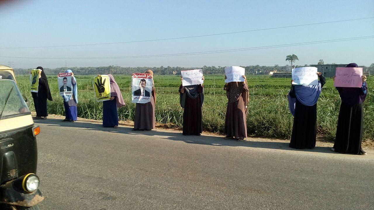 نظم أهالي الشهداء و المعتقلين بقرية أم الرضا – مركز كفر البطيخ بدمياط صباح اليوم سلسلة بشرية رافضة للانقلاب و تصرفاته الاجرامية بحق أبناء مصر على طريق دمياط – جمصة الزراعي