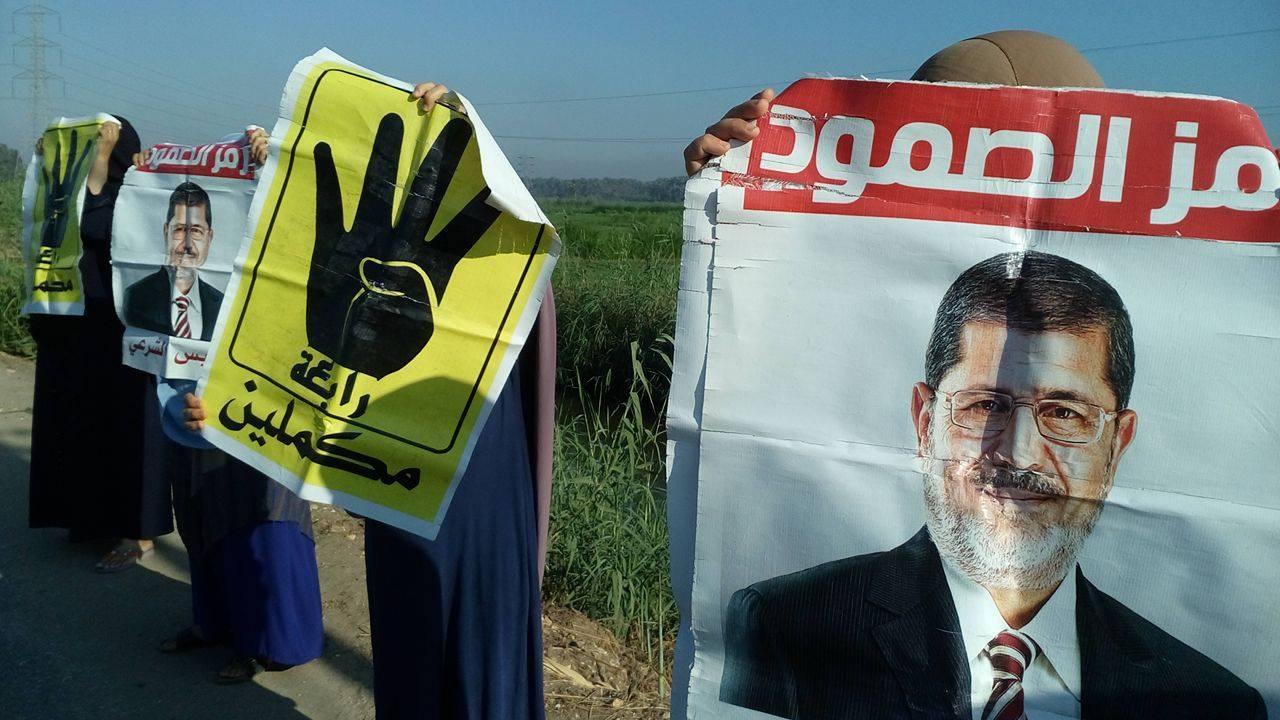 رفعت المشاركات صور الرئيس محمد مرسي و لافتات تندد بالتصفيات الجسدية التي كان آخرها منذ يومين استشهد فيها 16 من شباب مصر بينهم #الشهيد_على_الفار من أبناء #دمياط قرية #البصارطة .