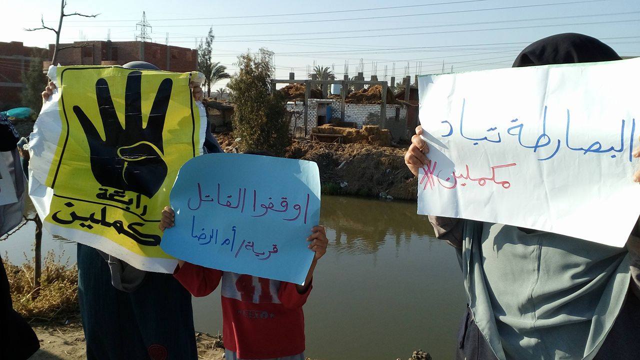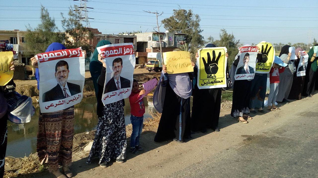 فقد نظمن سلسلة بشرية على طريق دمياط – جمصة الزراعي أمام قرية أم الرضا .