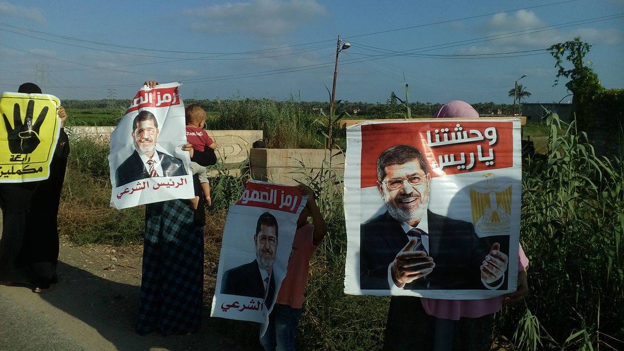 رفعت المشاركات صور الرئيس مرسي ولافتات تندد بحكم العسكر وترفض الانقلاب العسكري مثل
