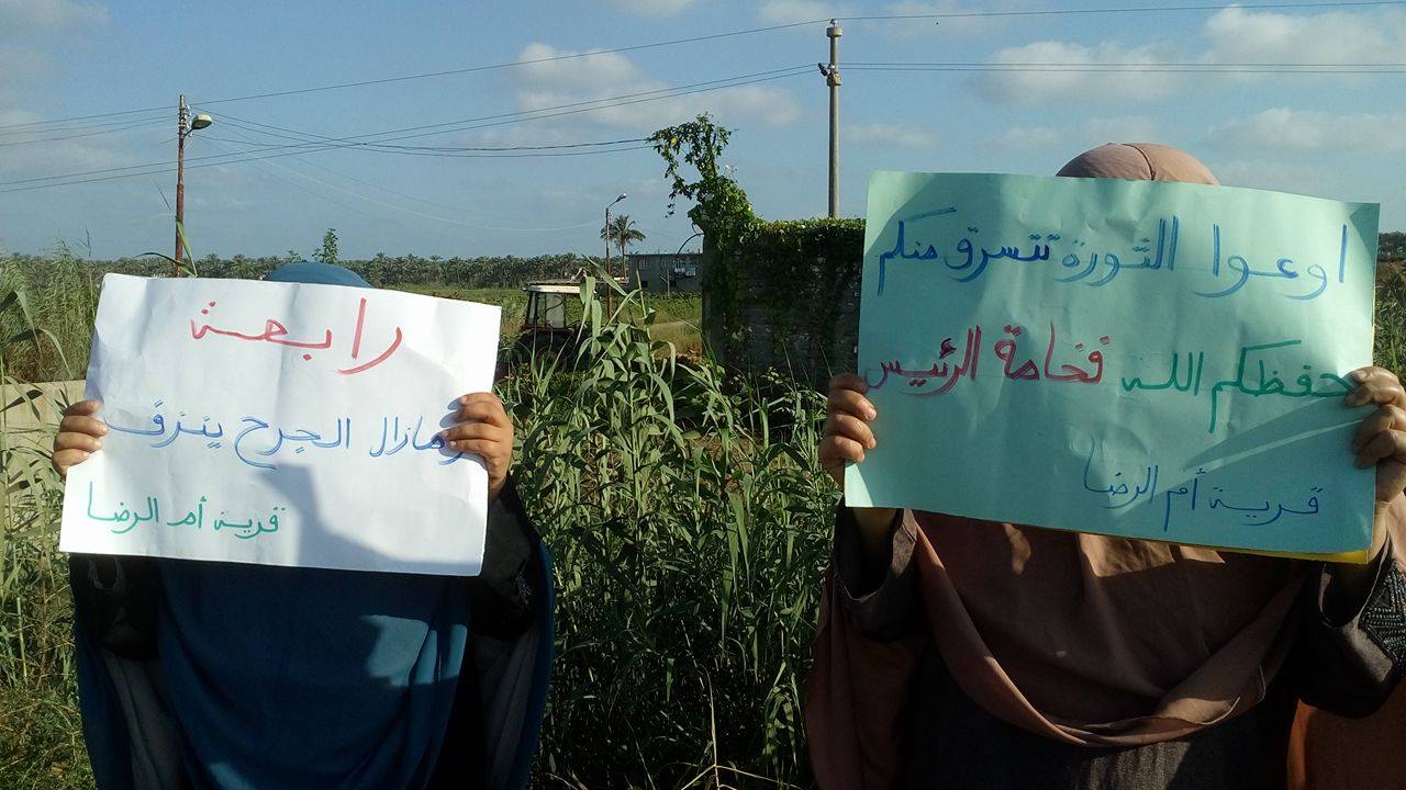 نظمت أمهات وزوجات وأقارب الشهداء والمعتقلين بقرية أم الرضا -مركز كفر البطيخ – صباح اليوم سلسلة بشرية على طريق دمياط – جمصة الزراعي