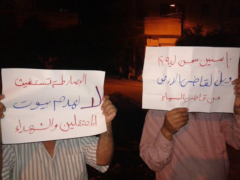 رفع الأهالي صور الرئيس مرسي و لافتات تندد بالقضاء الظالم و الداخلية البلطجية .