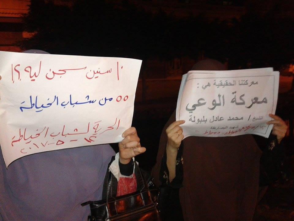 نظم أهالي قرية الخياطة مساء اليوم سلسلة بشرية على طريق دمياط – عزبة البرج