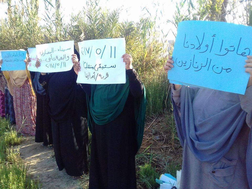نظمت #نساء_ضد_الانقلاب بكفر سعد و كفر البطيخ سلسلة بشرية صباح اليوم على طريق دمياط – جمصة الزراعي .