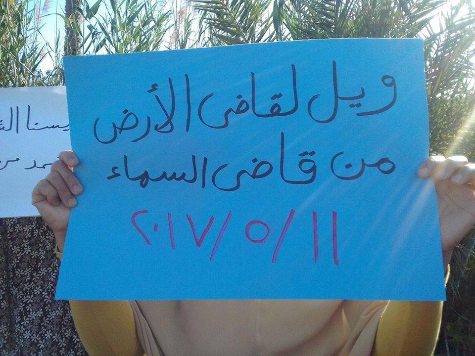 كما رفعوا لافتات تندد بالأحكام الظالمة و آخرها الحكم على 46 من أبناء #الخياطة ب10 سنوات سجن في قضية هزلية ملفقة .