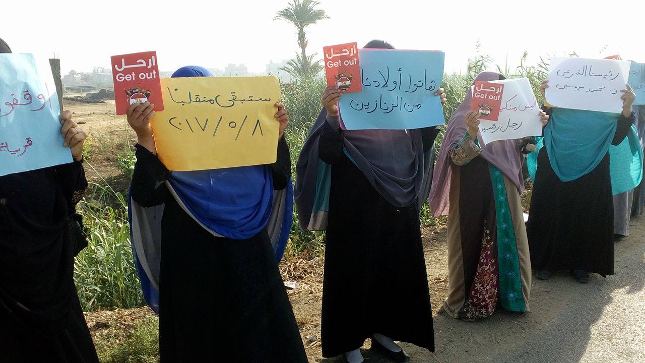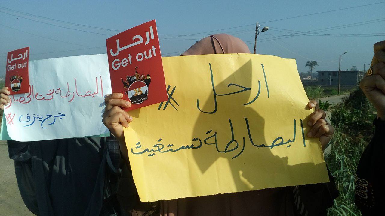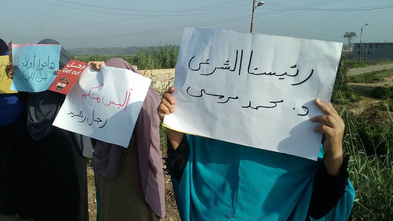 نظمت زوجات و بنات و أمهات الشهداء و المعتقلين بقرية أم الرضا صباح اليوم سلسلة بشرية على طريق دمياط – جمصة الزراعي .
