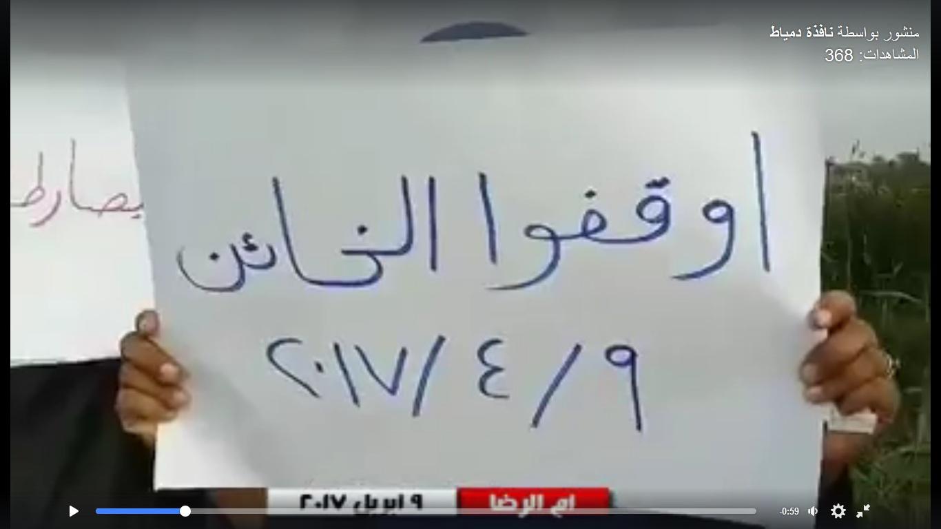 نظمت زوجات و أمهات الشهداء و المعتقلين بقرية أم الرضا صباح اليوم سلسلة بشرية على طريق دمياط – جمصة الزراعي
