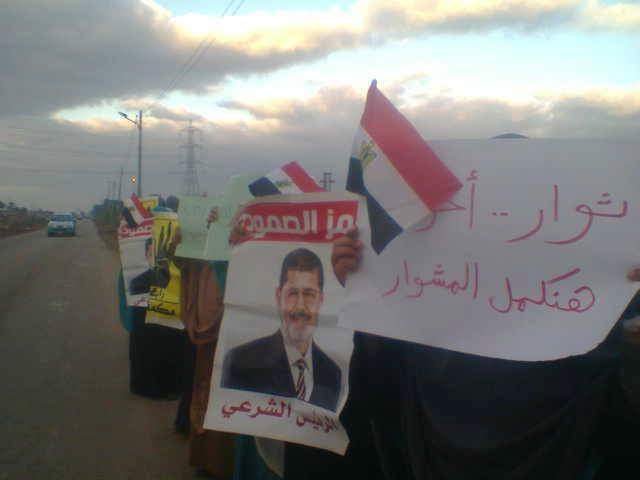 #دمياط رغم برودة الجو و الهواء العاصف خرجت حرائر أم الرضا في سلسلة بشرية تطالب باسقاط حكم العسكر و الحرية الحق لكل المعتقلين و عودة الرئيس محمد مرسي