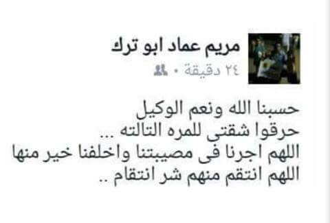 * اقتحام منازل أهالي الشهداء والمعتقلين واحراق منزل مريم ترك للمرة الثالثة .