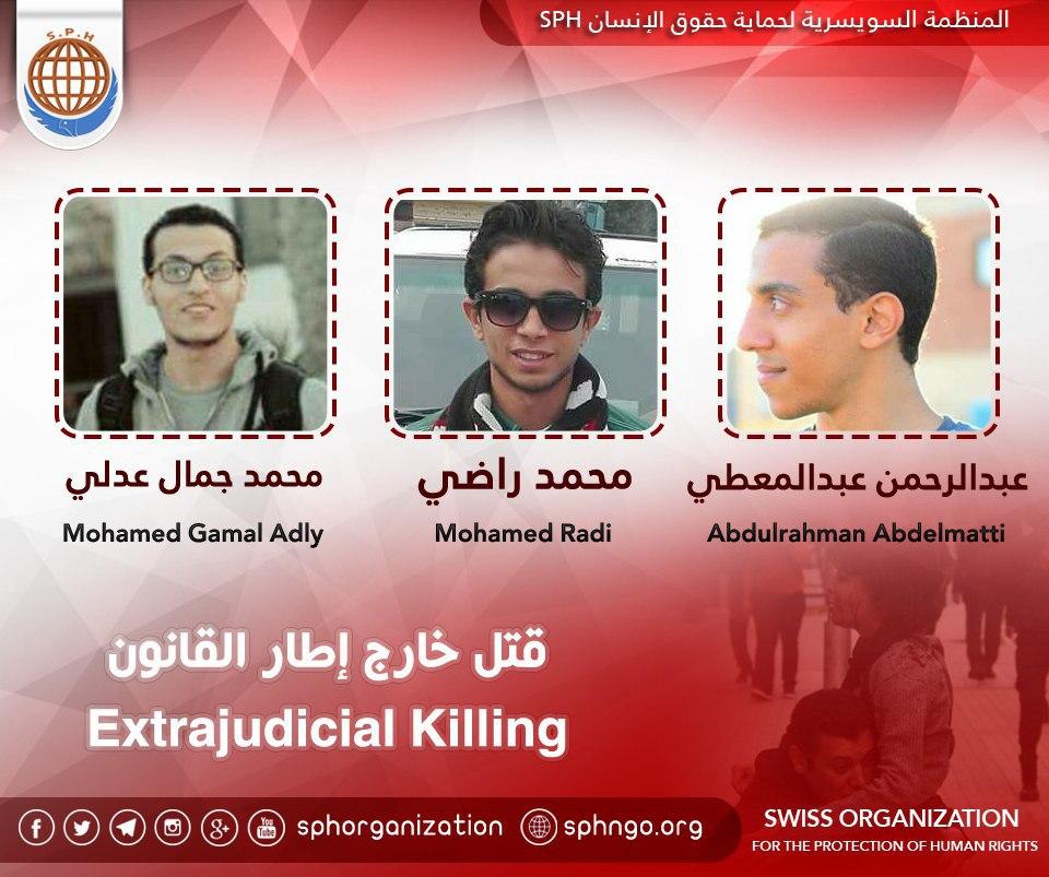 وتُدين المنظمة عمليات القتل خارج إطار القانون، على يد قوات الأمن المصرية، تلك الجرائم المتكررة بحق المواطنين المصريين، والتي تخالف القوانين والمواثيق الدولية الموقعه عليها الدولة.