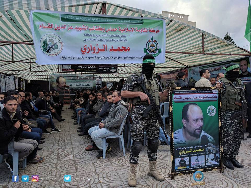 #نافذة_دمياط |#صور من بيت عزاء الشهيد التونسي المهندس القسامي محمد الزواري، والذي أقامته كتائب القسام في ساحة الجندي المجهول وسط مدينة غزة مساء يوم الاحد الموافق 18ديسمبر