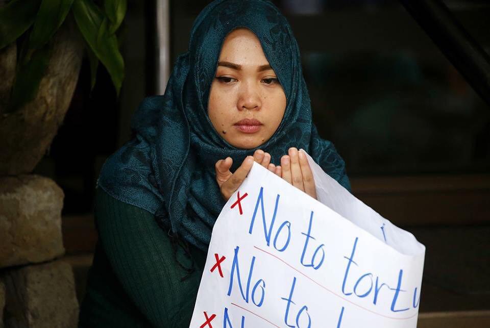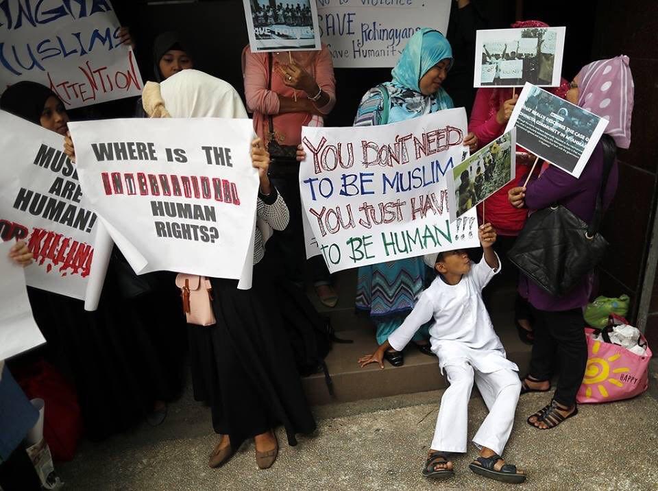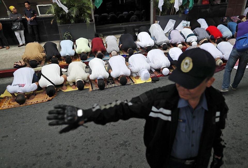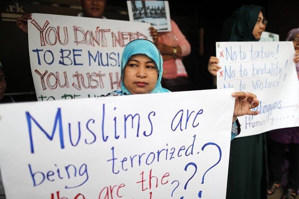 مظاهرة غاضبة وإقامة الصلاة أمام سفارة ميانمار في مدينة ماكاتي جنوب العاصمة الفلبينية مانيلا.
