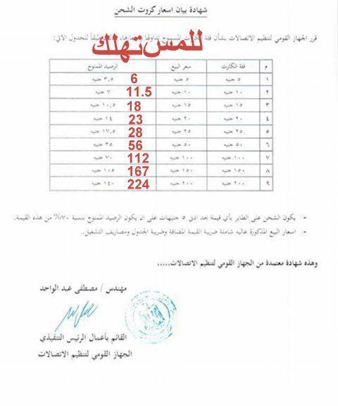 وطالب «محمود» في دعواه، بإصدار حكم مستعجل بإلغاء القرار الصادر من رئيس الجهاز القومي لتنظيم الاتصالات بزيادة أسعار كروت الشحن.