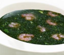 ثم نضيف الماء المغلي والملح والفلفل، ثم نضع الملوخية.