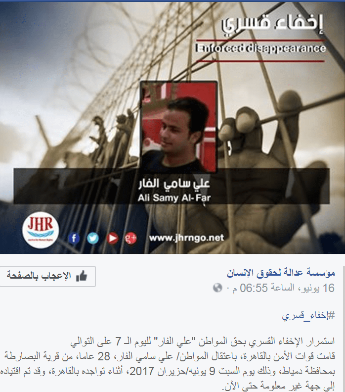 ننشر بالوثائق كذب داخلية الانقلاب التي قامت بقتل الشهيد / على سامي الفار – البصارطة 28 عام – وذلك بعد اعتقاله واخفاؤه قسرياً لمدة 3 شهور