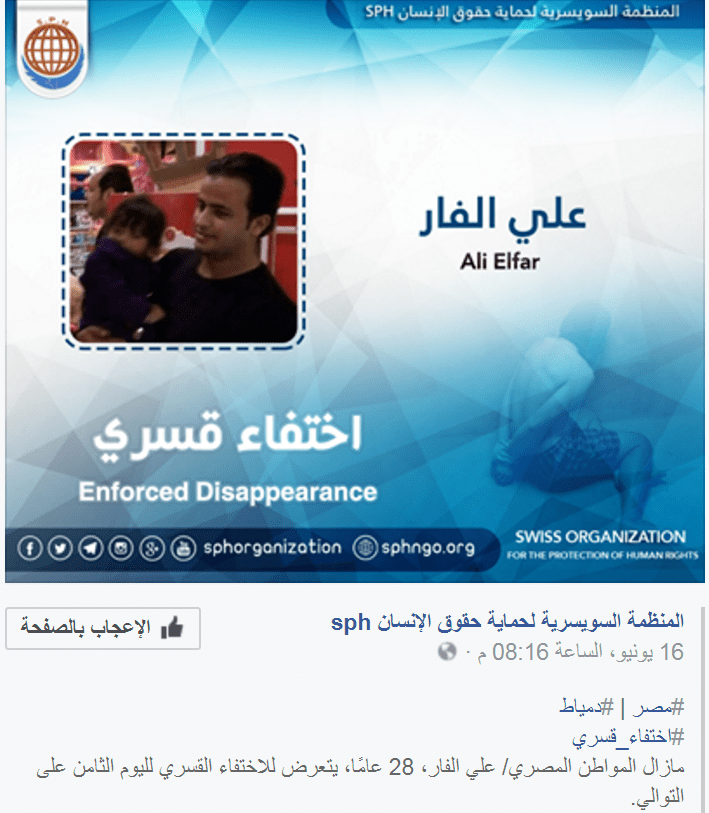 فقد وثقت المنظمات الحقوقية : الشهاب لحقوق الانسان والسويسرية لحقوق الانسان ومؤسسة عدالة لحقوق الانسان اختفاؤه قسرياً منذ يوم 14 ابريل 2017