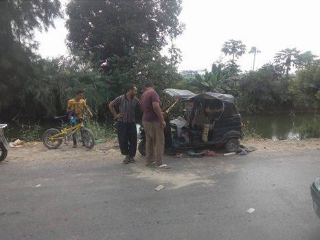 أثر اصطدام سيارة ملاكي تقودها سيدة علي طريق كفر اللضامين كفر البطيخ بتوك توك