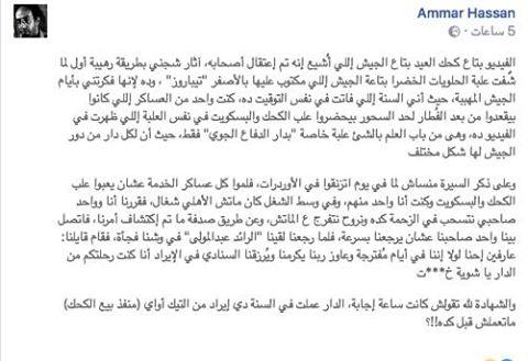 البوست اللي نزله المتحدث الرسمي للجيش وقتها عمل جدل كبير .. خصوصا انه قال فيه ان معظم ( الجيوش الميدانية ) و( المناطق العسكرية ) فتحت فروع ..
